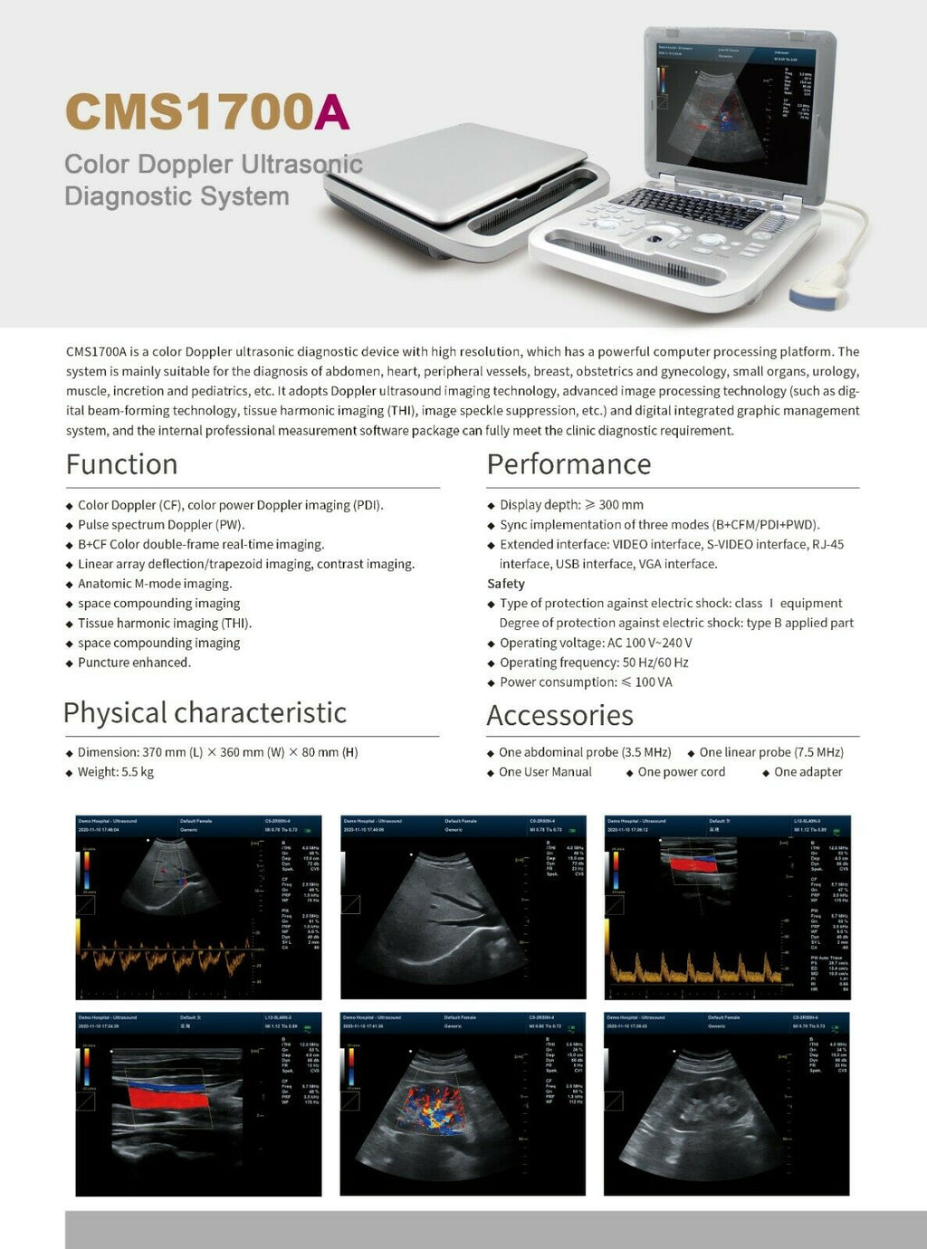 The Portable High-Resolution Color Doppler Ultrasound Scanner (6945040100362) with a convex probe offers advanced imaging capabilities for accurate diagnostics. This compact and lightweight system provides high-resolution color Doppler imaging, ideal for assessing blood flow, cardiovascular health, and other internal structures. The convex probe ensures clear, detailed results for abdominal, obstetric, and general medical applications. Its portability and user-friendly interface make it perfect for on-the-go use in clinics, hospitals, or remote locations. This new ultrasound scanner is a reliable tool for healthcare professionals seeking high-quality diagnostic solutions.